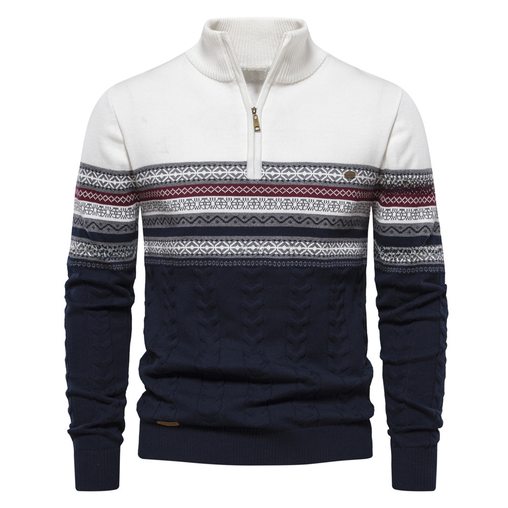 New Trendy Stand Collar Men's Sweater Half Zipper Knitted High Quality All-matching Men's Clothing